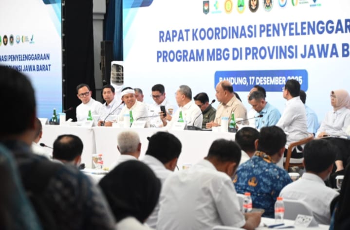 KARTINI (Bandung) – Program Makan Bergizi Gratis (MBG) tidak hanya dipandang sebagai agenda peningkatan gizi masyarakat, tetapi juga mulai dibaca sebagai mesin baru penggerak ekonomi rakyat di Jawa Barat. Hal ini mengemuka dalam Rapat Koordinasi percepatan MBG yang digelar di Gedung Sate, Bandung, Rabu (17/12/2025), yang mempertemukan pemerintah pusat dan daerah se-Jawa Barat.