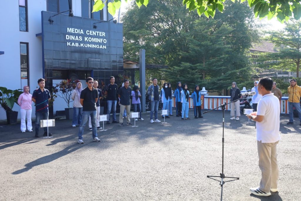 Apel dilaksanakan di halaman kantor Diskominfo dengan Kepala Sub Bagian Umum dan Kepegawaian, Iip Jalaludin, M.Pd., bertindak sebagai pemimpin apel. Sementara Sekretaris Diskominfo Kabupaten Kuningan, Cece Hendra Krissianto, S.STP., M.Si., menjadi pembina apel.